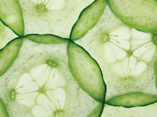 Le concombre possède des propriétés rafraîchissantes et apaisantes pour la peau et un effet régulateur de l’hydratation. Il resserre notamment la peau.